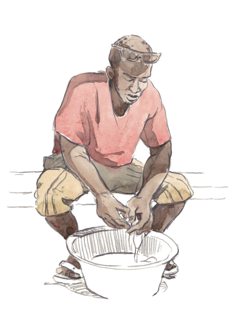 We are one, on est ensemble, voici une expression que l’on entend partout et qui dit bien l’importance de la communauté, des liens qui se tissent. Les marchands ambulants, les chauffeurs de taxis ou les pêcheurs, partagent leur quotidien comme leur nourriture, leurs éclats de rire et de voix. Ici en Gambie, je ressens pleinement le sens du mot fraternité et cela me réchauffe le cœur.