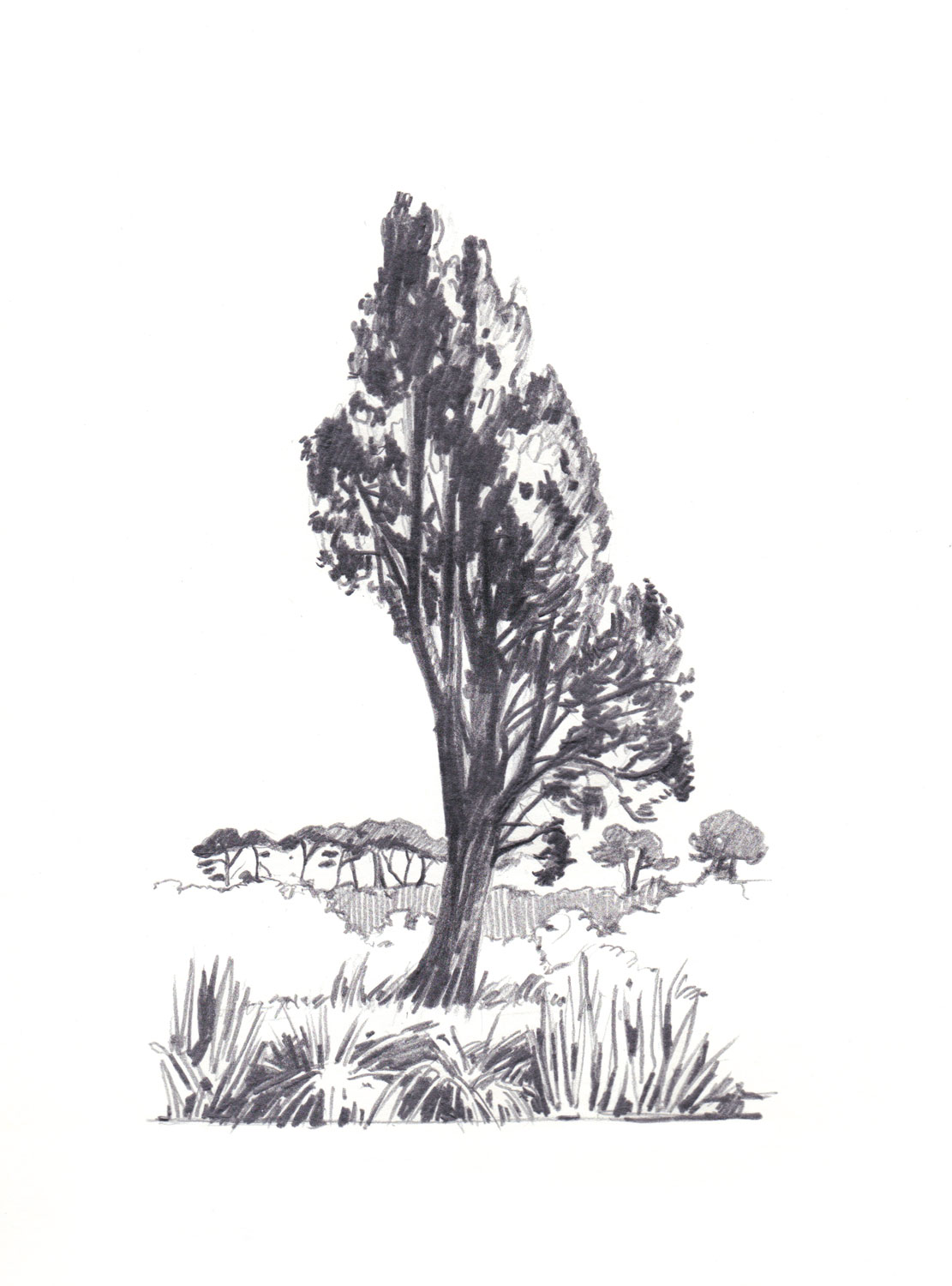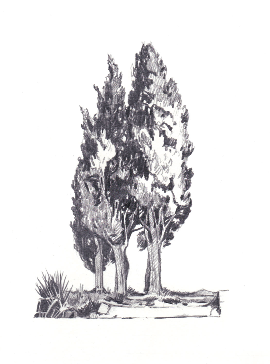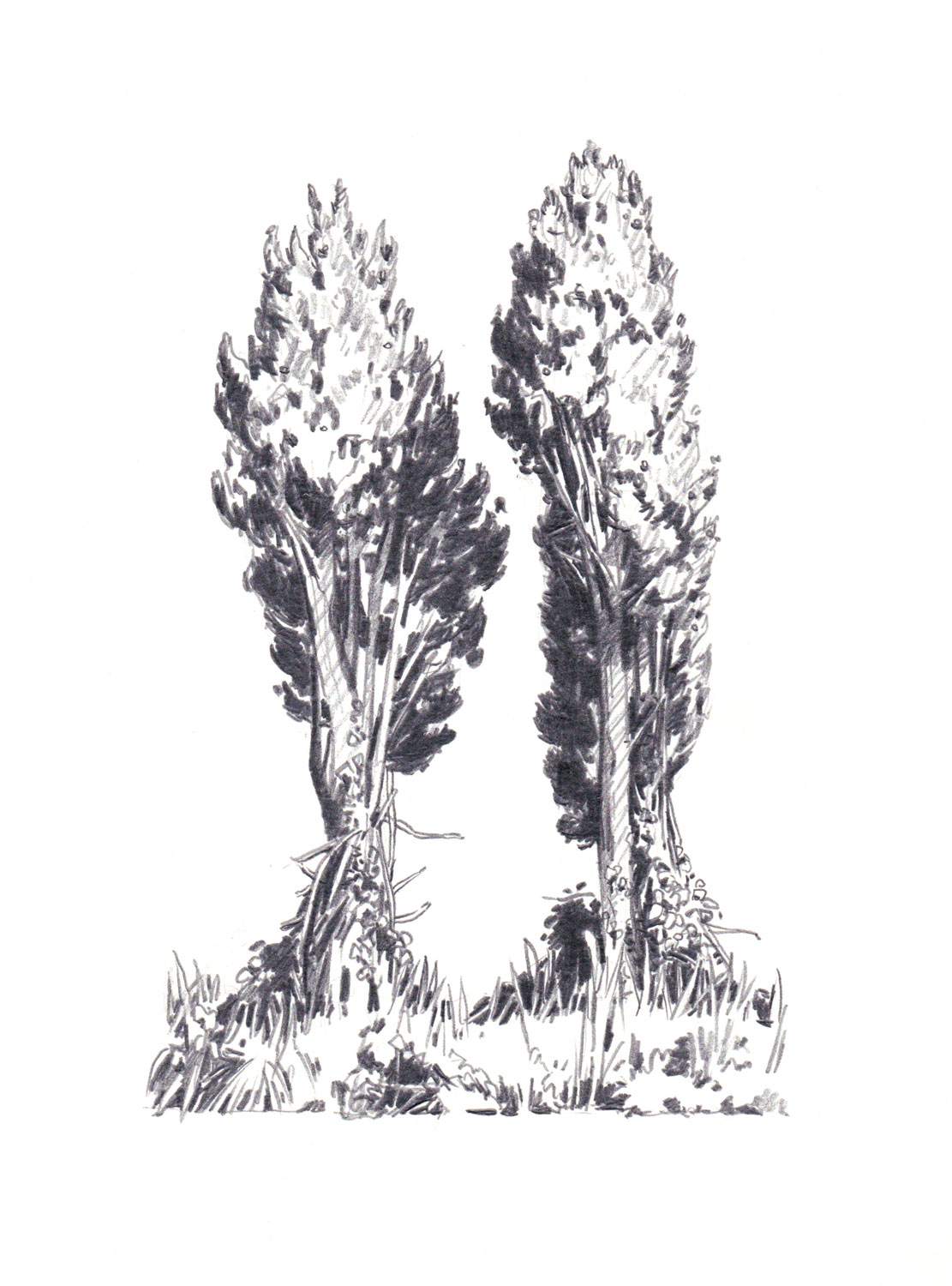 Dessins préparatoires : le cyprès solitaire, le couple et la famille