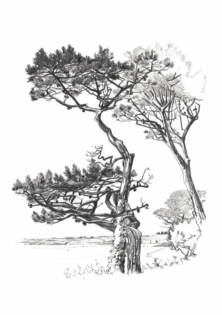 Dessins préparatoires : le cyprès solitaire, le couple et la famille